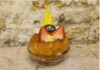 كيكه الباباز الهشه الغنيه بالعسل و عليها قطع الفاكهه