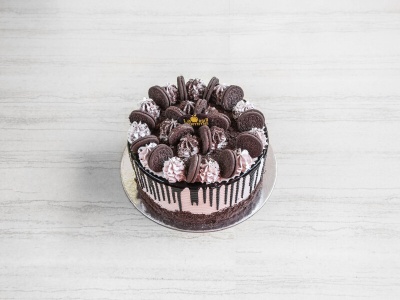 طبقات فادج تشوكليت وسبونج شيكولاتة محشوة بكريمة الاوريو ومغطاة ببسكويت الاوريو
