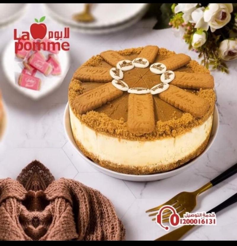 طبقة بسكويت لوتس وكريمة تشيز مغطاة بطبقة من زبده اللوتس وقطعه لوتس