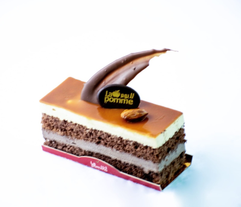 سبونج شيكولاته مع كريمه لباني كراميل وشيكولاته مغطي بصوص الكراميل واللوز