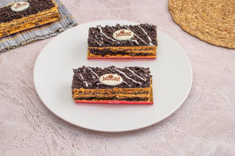 رقائق من الملفيه الطازج المحشوه بكريمه الباتسري الشيكولاته والمغطاه بالشيكولاته